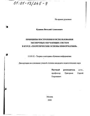 2.3. Экспертная обучающая система для курса «Теоретические основы информатики»- 87