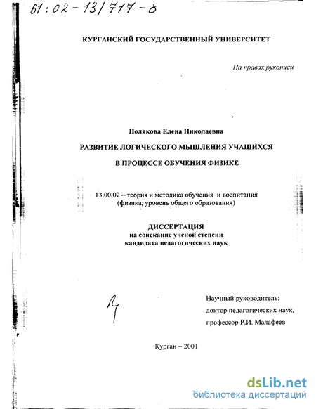 Малафеев Р.И., Полякова Е.Н. Развитие логического мышления учащихся в процессе обучения физике: Учебное пособие. Курган: Изд-во КГУ. 2001.43 с.