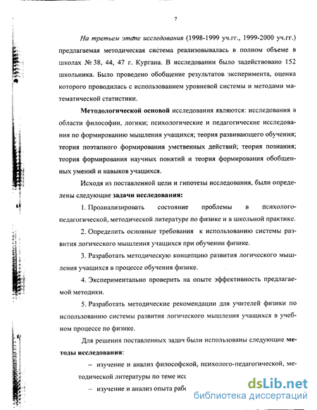 Цель исследования заключается в разработке научно-обоснованной системы развития логического мышления учащихся при обучении физике.
