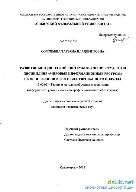 Глава 1. Теоретические предпосылки разработки методической системы обучения студентов дисциплине «мировые информационные ресурсы» на основе личностно ориентированного подхода 15