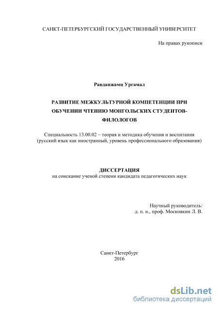 Глава 1. Теоретические основы развития межкультурной компетенции при обучении чтению монгольских студентов-филологов 14