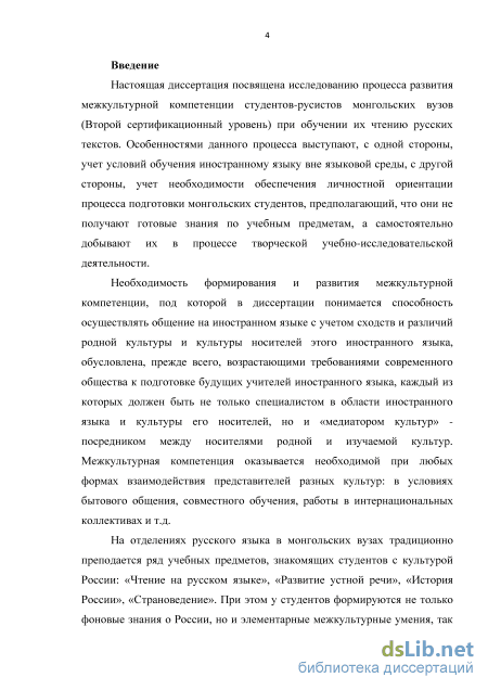 Цели развития межкультурной компетенции. Важным исходным положением методики развития межкультурной компетенции можно считать следующее: межкультурная компетенция, которая в диссертации рассматривается как разновидность коммуникативной компетенции, формируется на основе последней. Это означает, что цели развития межкультурной компетенции выступают в роли задач обучения по отношению к общим целям обучения русскому языку студентов-филологов в монгольском вузе, в нашем случае по отношению к целям обучения чтению как виду речевой деятельности на русском языке.