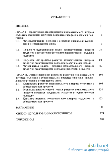 ГЛАВА II. Опытно-поисковая работа по развитию познавательного интереса студентов в образовательном процессе освоения дисциплин художественно-эстетического цикла