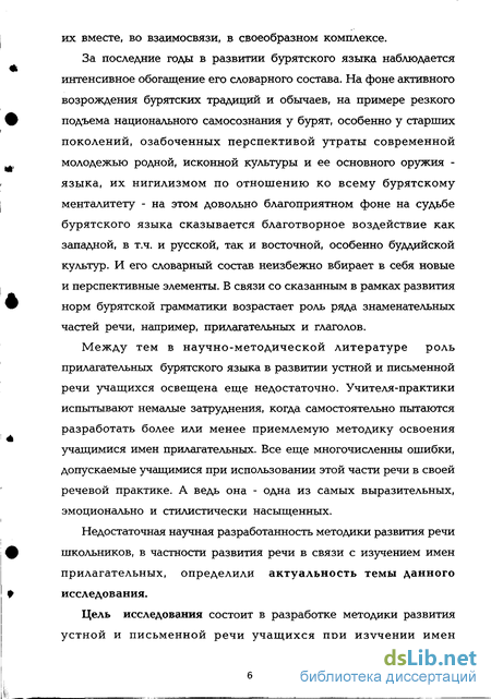 Между тем в научно-методической литературе роль прилагательных бурятского языка в развитии устной и письменной речи учащихся освещена еще недостаточно. Учителя-практики испытывают немалые затруднения, когда самостоятельно пытаются разработать более или менее приемлемую методику освоения учащимися имен прилагательных. Все еще многочисленны ошибки, допускаемые учащимися при использовании этой части речи в своей речевой практике. А ведь она - одна из самых выразительных, эмоционально и стилистически насыщенных.