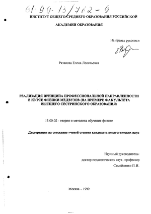 В процессе реализации данной гипотезы мы опирались на фундаментальные исследования в области психологии, педагогики и методики преподавания физики - на концепцию обучения В.В.Давыдова, на исследования, связанные с общедидактическими принципами Л.Я.Зориной, И.Я.Лернера, Ю.К.Бабанского, на теорию учебного предмета В.В.Краевского, на концепцию дифференциации образования Н.С.Пурышевой, на общедидактические исследования по проблемам высшей школы С.И.Архангельского, а также на концепцию реализации принципа профессиональной направленности обучения в высшей школе А.И.Наумова и работы П.И.Самойленко.