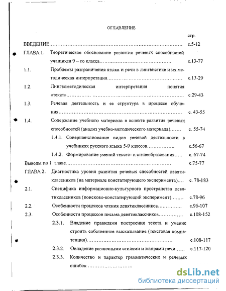 ГЛАВА 2. Диагностика уровня развития речевых способностей девятиклассников (на материале констатирующего эксперимента)... с. 78-183