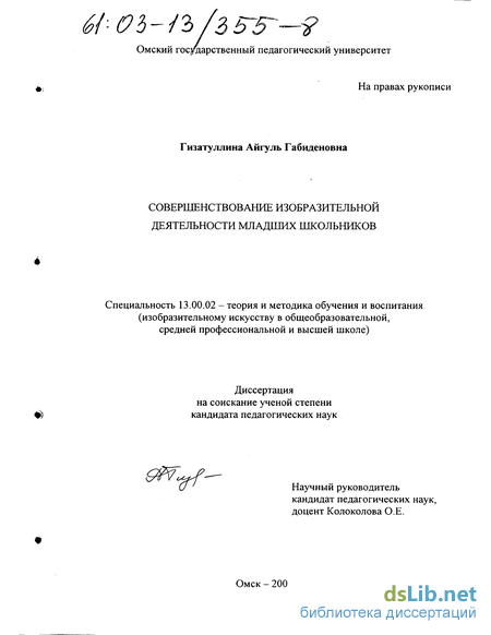 Предметом исследования являются методические основы совершенствования изобразительной деятельности учащихся начальной школы средствами развития представлений.