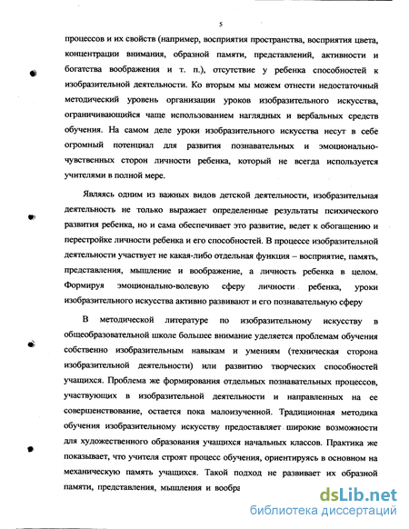 В методической литературе по изобразительному искусству в общеобразовательной школе большее внимание уделяется проблемам обучения собственно изобразительным навыкам и умениям (техническая сторона изобразительной деятельности) или развитию творческих способностей учащихся. Проблема же формирования отдельных познавательных процессов, участвующих в изобразительной деятельности и направленных на ее совершенствование, остается пока малоизученной. Традиционная методика обучения изобразительному искусству предоставляет широкие возможности для художественного образования учащихся начальных классов. Практика же показывает, что учителя строят процесс обучения, ориентируясь в основном на механическую память учащихся. Такой подход не развивает их образной памяти, представления, мышления и воображения. В то время, как известно,