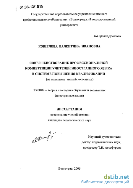 2 ГЛАВА Методика совершенствования профессиональной компетенции учителя иностранного языка в системе повышения квалификации 94