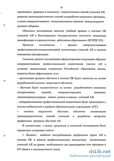 Предмет исследования - процесс совершенствования профессионально-коммуникативной компетенции учителей АЯ в системе повышения квалификации.