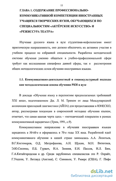 1.1 . Коммуникативно-деятельностный и социокультурный подходы как методологическая основа обучения РКИ в вузе 11