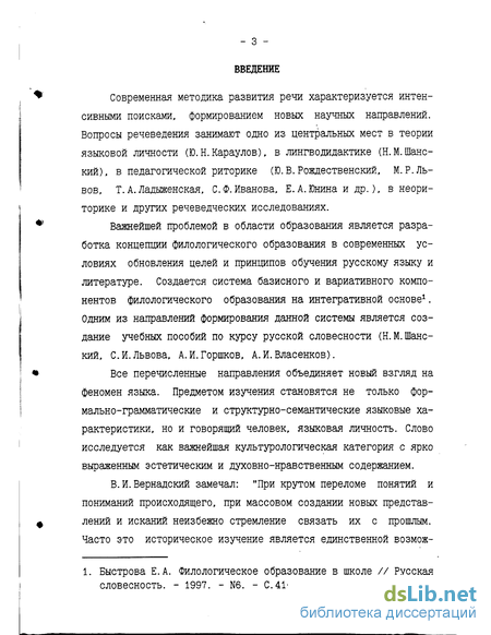 Важнейшей проблемой в области образования является разработка концепции филологического образования в современных условиях обновления целей и принципов обучения русскому языку и литературе. Создается система базисного и вариативного компонентов филологического образования на интегративной основе1. Одним из направлений формирования данной системы является создание учебных пособий по курсу русской словесности (Н.М.Шанский, С.И.Львова, А.И.Горшков, А.И.Власенков).