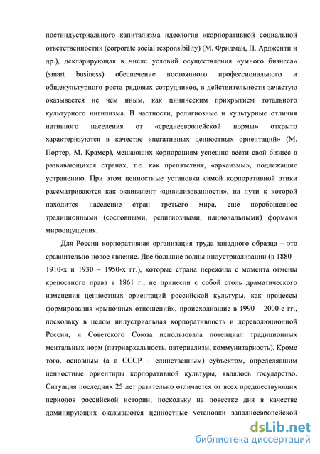 циональную ментальность данного исторического периода, демонстрации их взаимосвязи с глубинными, статичными ее элементами; выявлении культуро-творческого потенциала, как отдельных компонентов корпоративной культуры, так и ценностных установок, которые ими транслируются; раскрытии специфических черт национальной ментальности, оказавших влияние на формирование корпоративной культуры советского и постсоветского периодов.