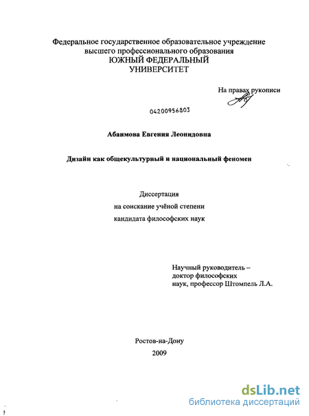 Теоретико-методологической основой диссертации стали работы зарубежных и отечественных культурологов, философов, эстетиков и искусствоведов, изучавших становление дизайна как особого культурного феномена в контексте процессов социокультурных изменений.
