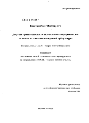 Предмет исследования: современные молодежные досугово-развлекательные телевизионные программы в контексте молодежной субкультуры