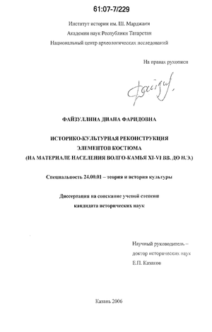 Методика реконструкции отдельных элементов костюма и их семантики разрабатывалась на основе работ М.А. Сабуровой [151], В.Ф. Генинга [34], Ю.А. Краснова [94], Н.Б. Крыласовой [99], Т.В. Мирошииой [116], А.Н. Павловой [135] и др.