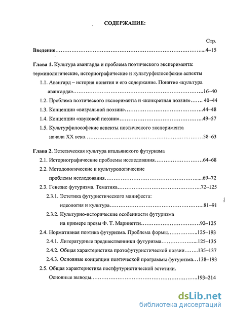 2.4.3. Основные концепции поэтической программы футуризма... 138-193