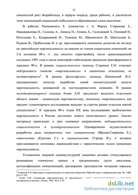ГЛАВА II. Особенности исследования феномена маргинальности на различных уровнях и в отдельных социальных сферах