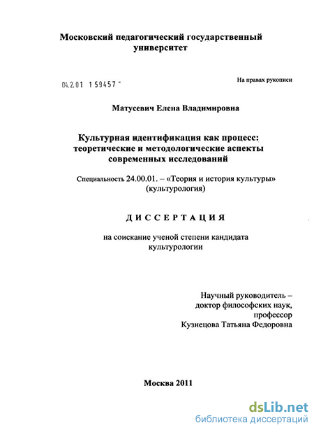 Объектом исследования является культурная идентификация как процесс.
