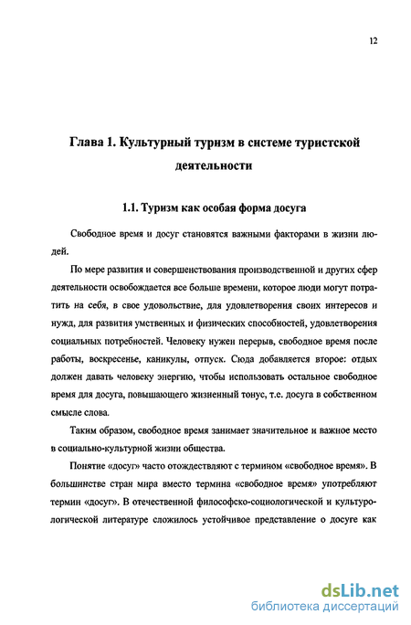Глава 1. Культурный туризм в системе туристской деятельности 12