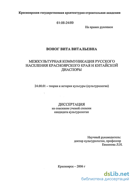 Теоретическая и практическая значимость диссертационной работы. Результаты исследования имеют теоретическую значимость и могут использоваться в прочтении курса лекций по «Межкультурной коммуникации», а также могут быть полезны всем, кто интересуется проблемой межкультурных коммуникаций. В работе представлены примеры взаимодействия культур, помогающие успешному общению представителей России и Китая при ведении общего бизнеса, при обмене студентами вузов по государственным программам. Исследование служит наглядным пособием для социологических служб, анализирующих изменение этнографической карты России и возможные последствия миграционных процессов на территории Красноярского края. Материал, полученный автором в ходе исследования, может быть использован в культурологии, истории Сибири и краеведении.
