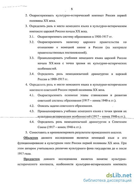 5. Сопоставить и проанализировать результаты проведенного анализа. Объектом данного исследования является немецкий язык и его функционирование в культурном поле России первой половины ХХ века. При этом автором учитывались различия культурного фона государства до и после 1917 года.