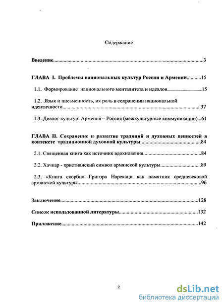 Структура диссертации. Диссертация состоит из введения, двух глав, пяти параграфов, заключения, списка использованной литературы, насчитывающего 306 наименований, и приложения (интервью, фотографии и документы, отражающие специфику данной работы, а также фрагменты «Книги скорби» Григора Нарекаци).