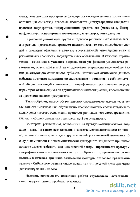 Таким образом, первое обстоятельство, определяющее актуальность темы данного исследования, обусловлено необходимостью соответствующего культурологического осмысления процессов регионального самоопределения как части общих социальных трансформаций современности.