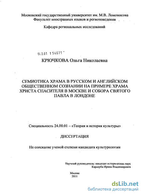 Предметом настоящего исследования является семиотика применительно к понятию сакрального пространства в разных культурах и ее выражение в общественном сознании русского и английского обществ.