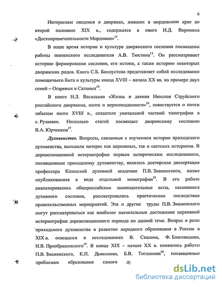 Духовенство. Вопросы, связанные с изучением истории приходского духовенства, вызывали интерес как церковных, так и светских историков. В дореволюционной историографии первым историческим исследованием, посвященным приходскому духовенству, являлась докторская диссертация профессора Казанской духовной академии П.В. Знаменского, позже опубликованная в виде отдельной монографии18. В его работе анализировались общероссийские законодательные акты, касавшиеся духовного сословия, рассматривались практические последствия правительственных мероприятий. Эта и другие труды П.В. Знаменского могут рассматриваться как наиболее значительные достижения церковной историографии дореволюционного периода по данной теме. Вопрос о роли приходского духовенства в развитии народного образования в России в XIX в. освещался в исследованиях В. Скалона, Ф. Благовидова, И.В. Преображенского19. В конце XIX - начале XX в. появились работы П.В. Знаменского, К.П. Дьяконова, Б.В. Титлинова20, посвященные проблемам образования самого духовенства. Исследователями A.A. Папковым и Е.К. Стратоновым была поднята проблема взаимоотношения церковных властей и приходского духовенства с 4} приходской общиной .