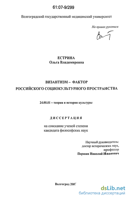 - Византизм как феномен, детерминирующий российское социокультурное пространство