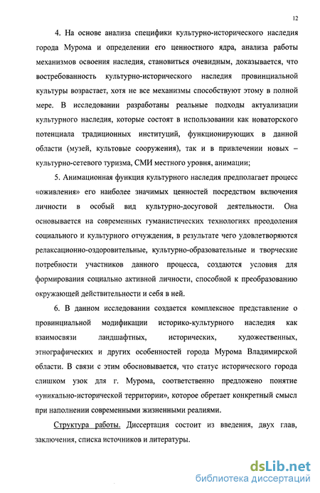 обосновано, что значительный ресурс актуализации культурного наследия состоит как в использовании новаторского потенциала традиционных институций, функционирующих в данной области (музей, культовые сооружения), так и в привлечении новых - культурного сетевого туризма, СМИ местного уровня, анимации;