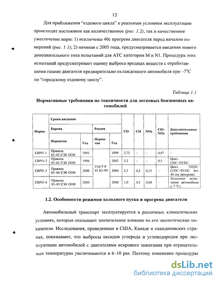 1.1. Нормативные требования на выброс вредных веществ автомобильными бензиновыми двигателями 11