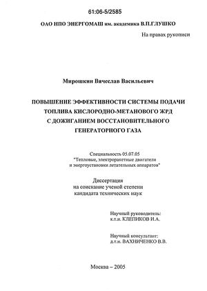 Результаты исследований по метановым ЖРД, изложенные в диссертации, использованы в отчетах НПО Энергомаш и в Евро-Российском проекте "Волга".