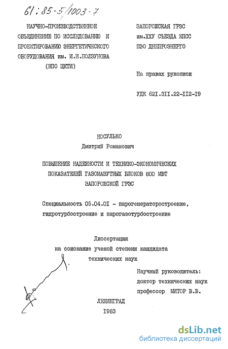 Постановлением ГКНТ № 430 от 26 ноября 1976 года намечалось решение проблемы "Освоить головной энергоблок мощностью 800 МВт с одновальной турбиной на париметры пара 240 ата, 540С/540С с однокорпусным котлом под наддувом (топливо мазут) на Запорожской ГРЭС, ст.№ 5", включающей этапы: провести испытания и исследования основного и вспомогательного оборудования, довести показатели работы блока до проектных; выдать рекомендации заводам-изготовителям оборудования для учета их при серийном производстве оборудования. Поэтому решение узловых вопросов повышения надежности и экономичности для достижения проектных технико-экономических показателей и обобщение материалов по исследованию и доводке блока 800 МВт, излагаемых в диссертации, представляется весьма актуальным для использования их в проектах нового оборудования и при эксплуатации, установленных на электростанциях блоков.
