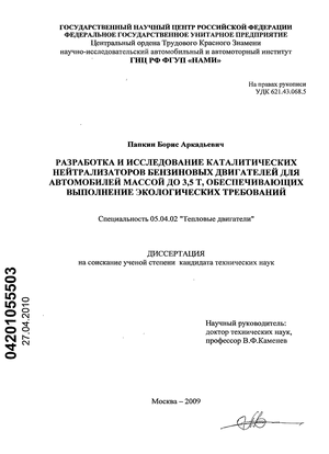 Глава 5. Разработка новых нейтрализаторов для легковых и грузопассажирских автомобилей массой до 3,5 т 150