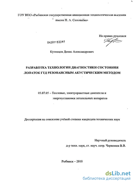 - полностью работа докладывалась на заседаниях кафедры «Авиационные двигатели» в Рыбинской государственной авиационной технологической академии.