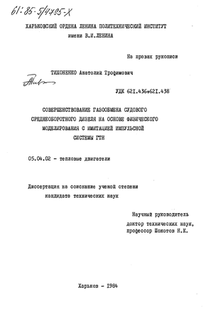 Математические модели, описывающие рабочий процесс в цилиндре двигателя и агрегатах турбонаддува, разработанные советскими учеными А.С.Орлиным, М.Г.Кругловым, Н.Н.Иванченко, Б.М.Гонча- ром, О.Г.Красовским, Н.М.Глаголевым, А.Э.Симеоном и другими позволяют исследовать процессы газообмена при принятом законе тепловыделения и теплообмене со стенками цилиндра / 4,5,6,7,8,9,10/.