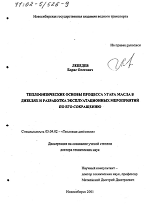 Лебедев Борис Олегович. Теплофизические основы процесса угара масла в дизелях и разработка эксплуатационных мероприятий по его сокращению : диссертация ... доктора технических наук : 05.04.02.- Новосибирск, 2001.- 233 с.: ил. РГБ ОД, 71 02-5/526-9