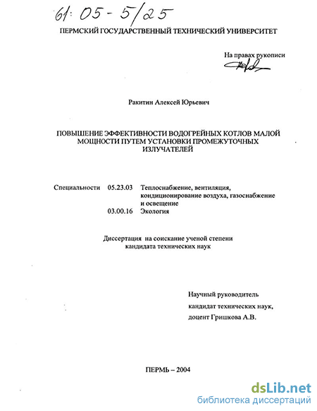 материалы диссертационной работы использованы кафедрой ТГВ и ОВБ Пермского государственного технического университета в курсах лекций, а также в курсовом и дипломном проектировании при подготовке инженеров по специальности 290700 «Теплогазоснабжение и вентиляция».