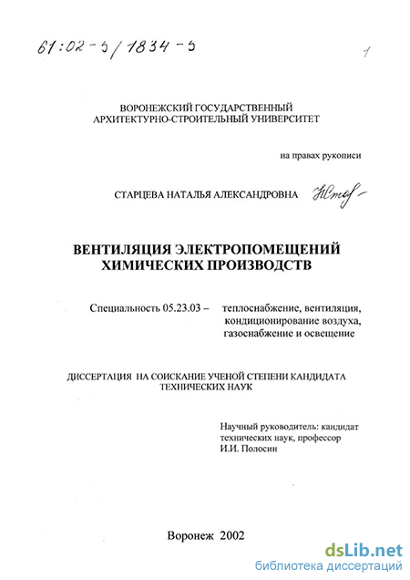 Согласно научным положениям, касающихся вентиляции промышленных зданий, разработанных Баркаловым Б.В., Батуриным В.В., Богословским В.Н., Гримитлиным М.И., Позиным Г.М., Полушкиным В.И., Сазоновым Э.В.,