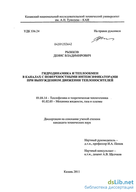 Апробация работы. Полученные основные результаты диссертации докладывались и получили одобрение на Школе-семинаре молодых ученых и специалистов под руководством академика РАН А.И. Леонтьева «Проблемы газодинамики и тепломассообмена в энергетических установках» (Жуковский, 2009, Звенигород, 2011), V Российской национальной конференции по теплообмену (Москва, 2010), Международной молодежной конференции «Туполевские чтения» (Казань, 2009–2011); Международной школе-семинаре «Актуальные проблемы теплофизики и физической гидрогазодинамики» (Алушта, 2010); Межвузовском научно-практическом семинаре «Внутрикамерные процессы в энергетических установках, акустика, диагностика, экология» (Казань, 2011), Всероссийской школе-семинаре молодых ученых и специалистов под руководством академика РАН В.Е. Алемасова «Проблемы тепломассообмена и гидродинамики в энергомашиностроении» (Казань, 2009), IV и V Российской конференции «Тепломассообмен и гидродинамика в закрученных потоках» (Москва, 2009, 2011), VI Международной научно-технической конференции «Авиация, наземный транспорт и энергетика» (Казань, 2011), на научно-технических семинарах кафедры ТОТ КНИТУ–КАИ (2007–2011).