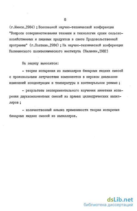 также систематических экспериментальных исследований процесса испарения бинарных жидких смесей из капилляров.