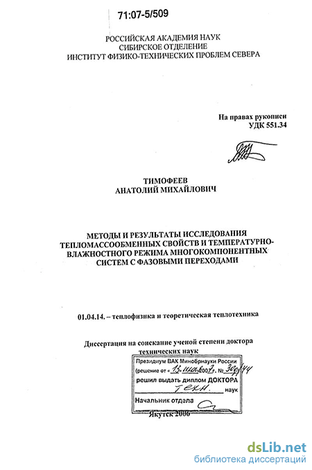 Таким образом, актуальной является как разработка или усовершенствование существующих методов теоретического исследования тепломас-сопереноса в промерзающих дисперсных материалах и экспериментального исследования их теплофизических свойств и фазового состава поровой воды, так и сами полученные результаты и их использование в расчетах