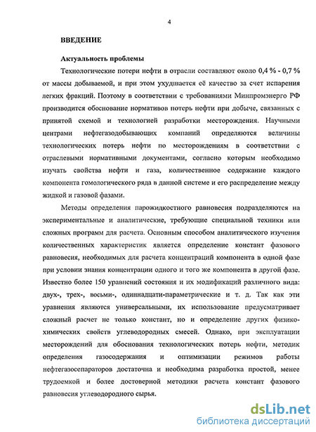 Методы определения парожидкостного равновесия подразделяются на экспериментальные и аналитические, требующие специальной техники или сложных программ для расчета. Основным способом аналитического изучения количественных характеристик является определение констант фазового равновесия, необходимых для расчета концентраций компонента в одной фазе при условии знания концентрации одного и того же компонента в другой фазе. Известно более 150 уравнений состояния а их модификаций различного віща: двух-, трех-, восьми-, одиннадцати-параметрические и т. д. Так как эти уравнения являются универсальными, их использование предусматривает сложный расчет не только констант, но и определение других физико-химических свойств углеводородных смесей. Однако, при эксплуатации месторождений для обоснования технологических потерь нефти, методик определения газосодержания и оптимизации режимов работы нефтегазосепараторов достаточно и необходимо разработка простой, менее трудоемкой и более достоверной методики расчета констант фазового равновесия углеводородного сырья.