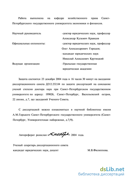 Апробация результатов исследования. Диссертация выполнена и обсуждена на кафедре хозяйственного права Санкт-Петербургского государственного университета экономики и финансов. Основные положения диссертации нашли отражение в докладах на научных сессиях профессорско-преподавательского состава, научных сотрудников и аспирантов, проводившихся в 2001, 2002 и 2003, 2004 годах, в межвузовских научных публикациях. В 2003 году диссертант выступила с докладом «Некоторые проблемы договора купли-продажи акций» на Всероссийской научно практической конференции «Актуальные проблемы современного гражданского и предпринимательского права», проводившейся Уральской государственной юридической академией в Екатеринбурге. Материалы исследования использовались для проведения практических занятий по гражданскому праву.