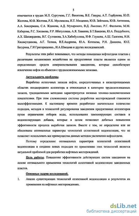 Основные задачи исследований. 1. Анализ существующих технологий селективной водоизоляции и результатов их применения на нефтяных месторождениях