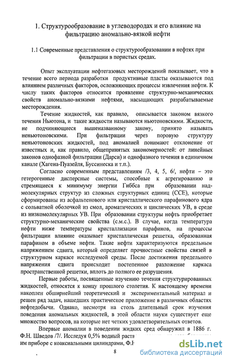 1. СТРУКТУРООБРАЗОВАНИЕ В УГДЕВОДОРОДАХ И ЕГО ВЛИЯНИЕ НА ФИЛЬТРАЦИЮ АНОМАЛЬНО-ВЯЗКОЙ НЕФТИ 8