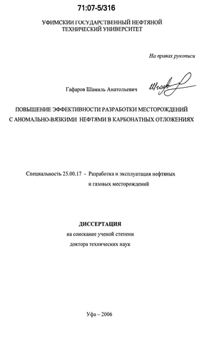 Цель диссертационной работ - разработка новых методов и технологий для увеличения полноты выработки запасов аномально-вязких нефтей в карбонатных коллекторах.