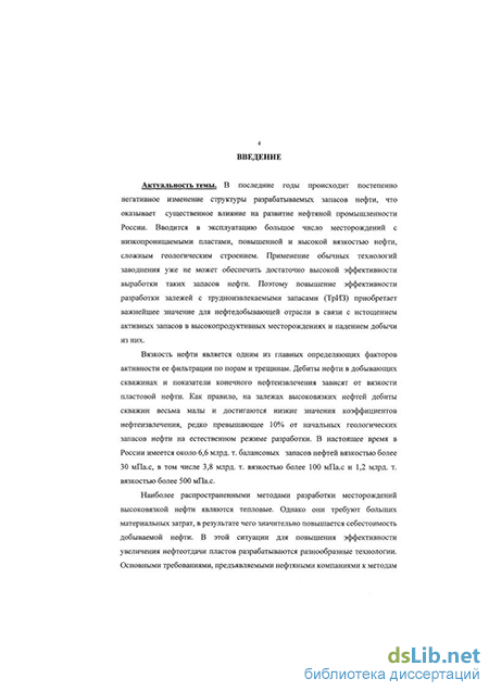 Известно, что в России имеются значительные запасы нефти повышенной и высокой вязкости. Большинство нефтяных месторождений разрабатывается с помощью разновидностей систем и модификаций закачки необработанной воды в пласты для поддержания пластового давления и увеличения конечного коэффициента нефтеотдачи. Однако в неоднородных пластах, содержащих нефть высокой вязкости, традиционное заводнение обеспечивает коэффициент конечного нефтеизвлечения не выше 25%. Поэтому совершенствование существующих и создание более эффективных методов является важной задачей в нефтедобыче[59,60,90].